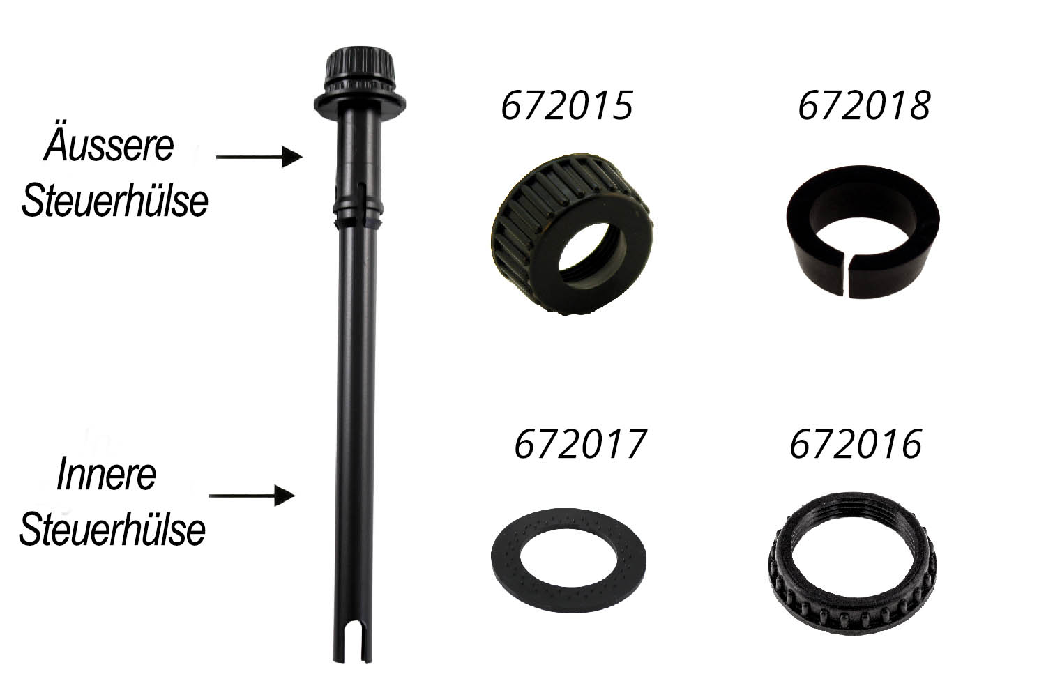 Auf die Steuerhülsen legen Sie nun die Unterlegscheibe Art.nr. 672017 (bitte mit den Zacken nach unten montieren) und schrauben die Mutter mit der Art.nr. 672016 fest. Auf die Nackstützen-Stäbe muss noch die Mutter mit der Art.nr. 672015 und die Hülse mit der Art.nr. 672018 angebracht werden. Dann ist es soweit und die Nackenstützen-Stäbe können in die Steuerhülsen in der gewünschten Höhe eingestellt werden. Die Mutter wird festgezogen, um die Nackenstütze dauerhaft zu fixieren.